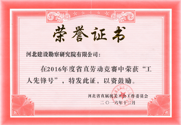 根據(jù)河北省直屬機關(guān)工會工作委員會2月27日發(fā)布的冀直工【2017】4號文件《河北省直屬機關(guān)工會工委關(guān)于2016年度勞動競賽情況的通報》,對在2016年度勞動競賽活動中成績突出的單位和個人進行表彰。其中,包括我公司在內(nèi)的48個單位被評為省直“工人先鋒號”。