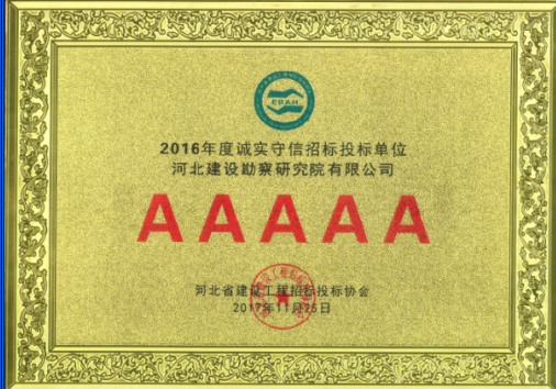 我公司獲評(píng)2016年度河北省建設(shè)工程招標(biāo)投標(biāo)誠(chéng)實(shí)守信5A級(jí)施工企業(yè)
