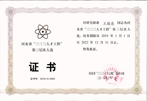 經公司推薦,石家莊市人力資源和社會保障局組織評審,報河北省“三三三人才工程”領導小組批準、地下工程公司王德亮榮獲河北省“三三三人才工程”第三層次人選。
