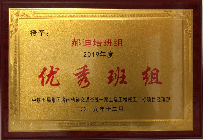 由我公司承接的濟南市軌道交通R2線施工監(jiān)測項目,近日收到中鐵五局集團濟南地鐵項目部的表揚信,并授予我公司“2019年度優(yōu)秀合作單位”、郝迪培班組“2019年度優(yōu)秀班組”兩項榮譽獎牌。