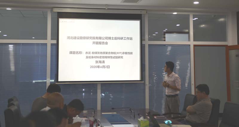 2020年6月2日下午,公司博士后工作站舉辦博士后研究人員張海清的開題報告會。由博士后工作站站長聶慶科正高級工程師、河北省建筑科學研究院副院長王維玉正高級工程師、北京交通大學白冰教授、河北科技大學張亞通教授、河北省生態(tài)環(huán)境廳謝劍鋒正高級工程師組成專家組,對張海清博士研究的《赤泥-粉煤灰地質(zhì)聚合物樁(RFP)承載性能及樁身材料宏微觀特性試驗研究》開題報告進行了評審,公司總經(jīng)理李華偉、省人力資源和社會保障廳、市人力資源和社會保障局有關(guān)領(lǐng)導參加了報告會。