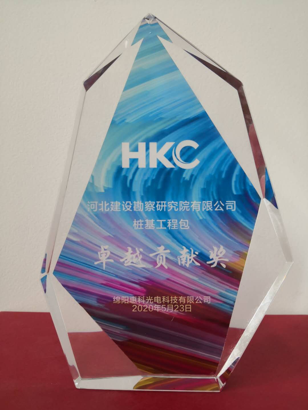 公司收到綿陽惠科光電科技有限公司頒發(fā)的“卓越貢獻(xiàn)獎”獎杯