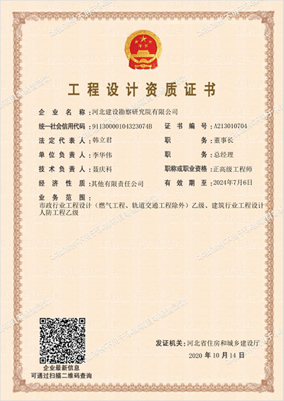 公司于2020年10月27日取得了建筑行業(yè)(人防工程)工程設計乙級資質(zhì)證書,可承擔(1)建設規(guī)模在1000萬元以下的各級人防工程設計項目;(2)建設規(guī)模在2000萬元以下的醫(yī)療救護工程、防空專業(yè)隊工程、人員掩蔽工程、人防配套工程設計項目。