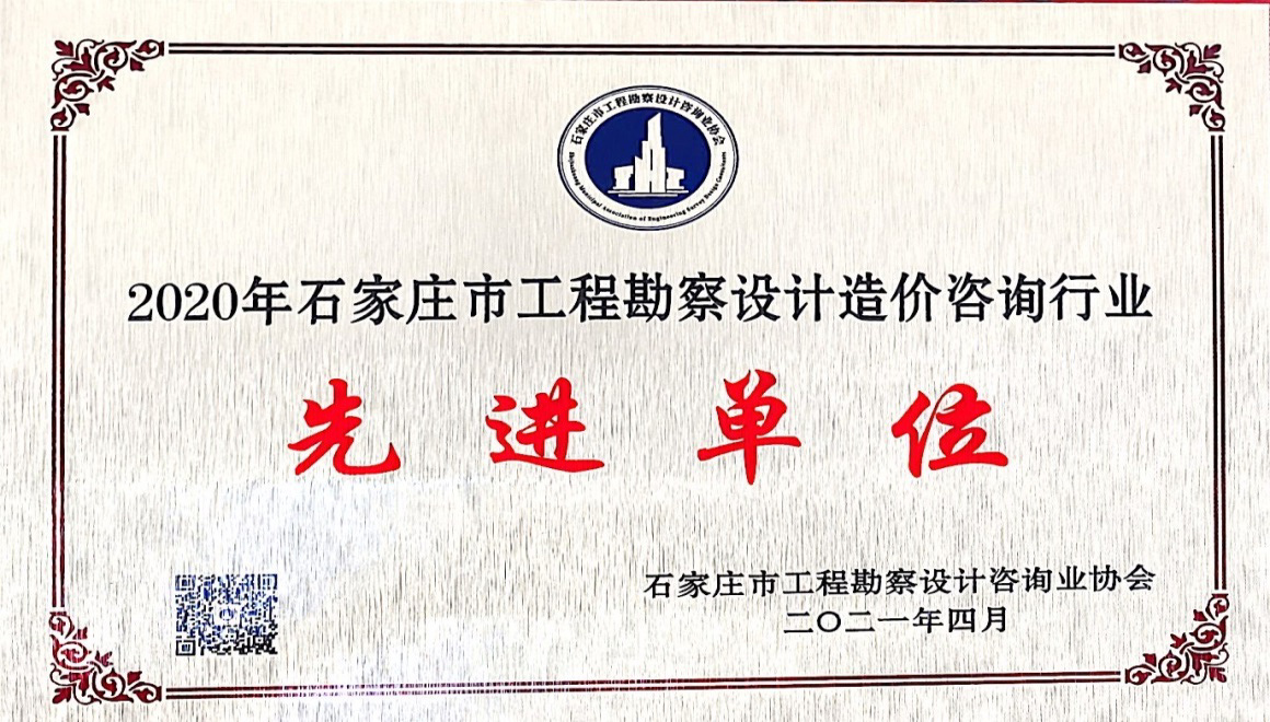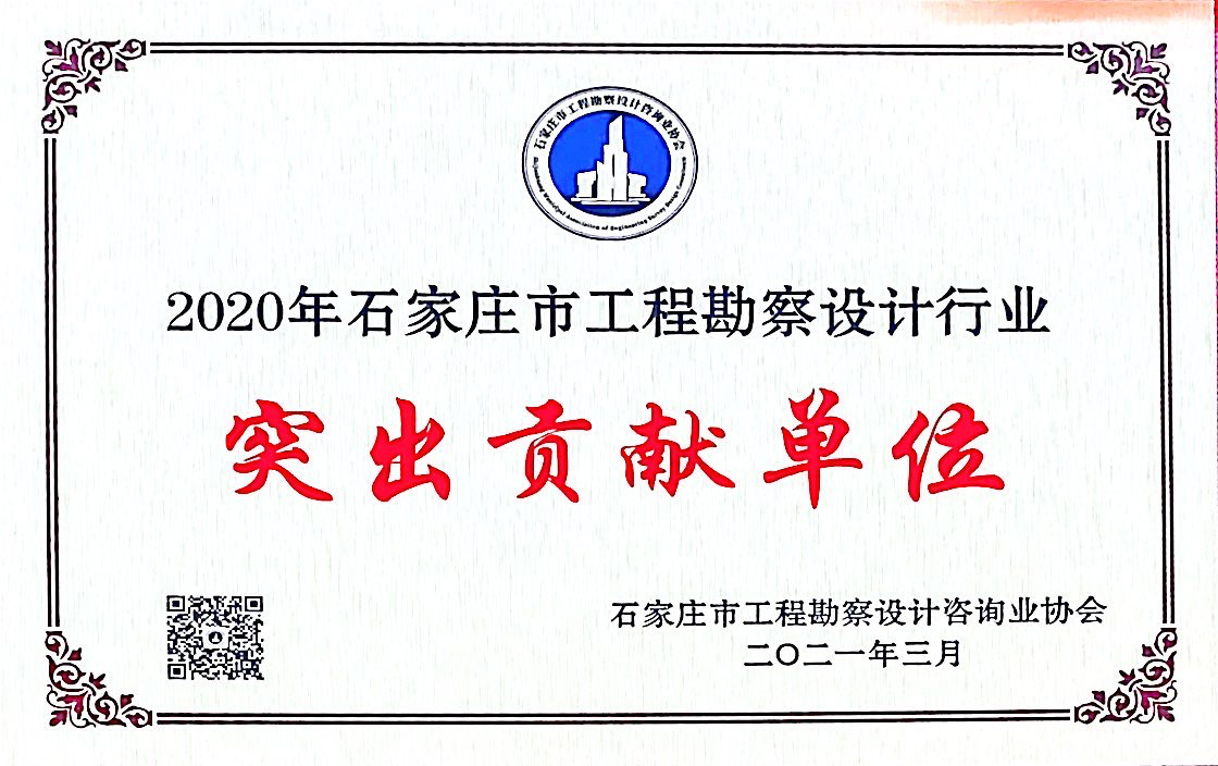 我公司憑借在勘察設(shè)計行業(yè)的杰出貢獻和企業(yè)綜合實力,榮獲由石家莊市工程勘察設(shè)計咨詢協(xié)會評選的“2020年石家莊市工程勘察設(shè)計行業(yè)突出貢獻單位”和“2020年石家莊市工程勘察設(shè)計造價咨詢行業(yè)先進單位”兩項榮譽稱號。公司獲此殊榮,充分彰顯了我公司在行業(yè)內(nèi)雄厚的綜合實力,進一步奠定了行業(yè)排頭兵的地位。