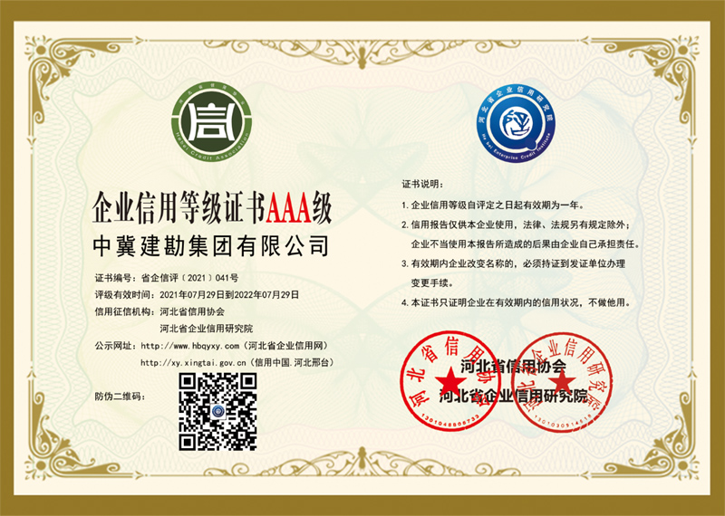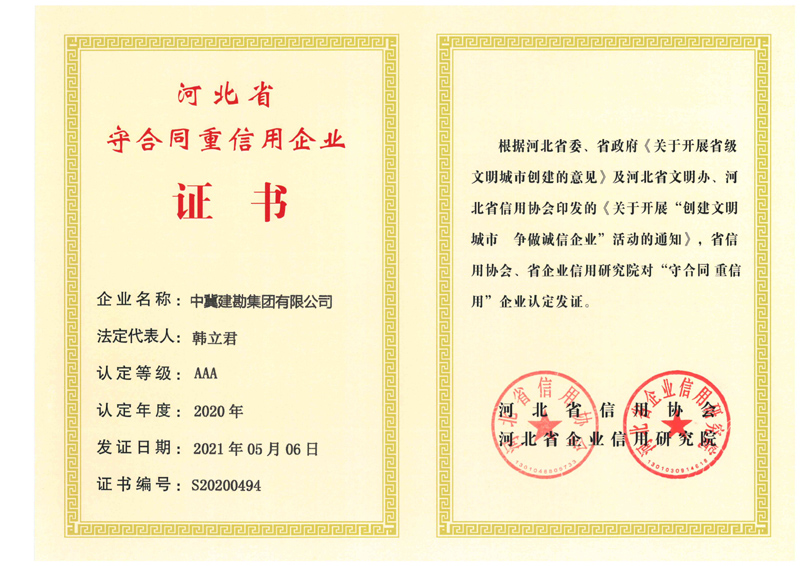 根據(jù)河北省信用辦、河北省信用協(xié)會等七部門印發(fā)的《關(guān)于開展“推進誠信建設(shè)共建信用河北”的活動方案》的通知,河北省信用協(xié)會、河北省企業(yè)信用研究院對“守合同重信用”企業(yè)進行認(rèn)定,我公司繼續(xù)被評定為“河北省AAA級守合同重信用企業(yè)”。