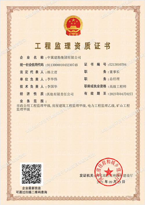 集團(tuán)公司取得電力工程監(jiān)理乙級、市政公用工程監(jiān)理甲級資質(zhì)證書