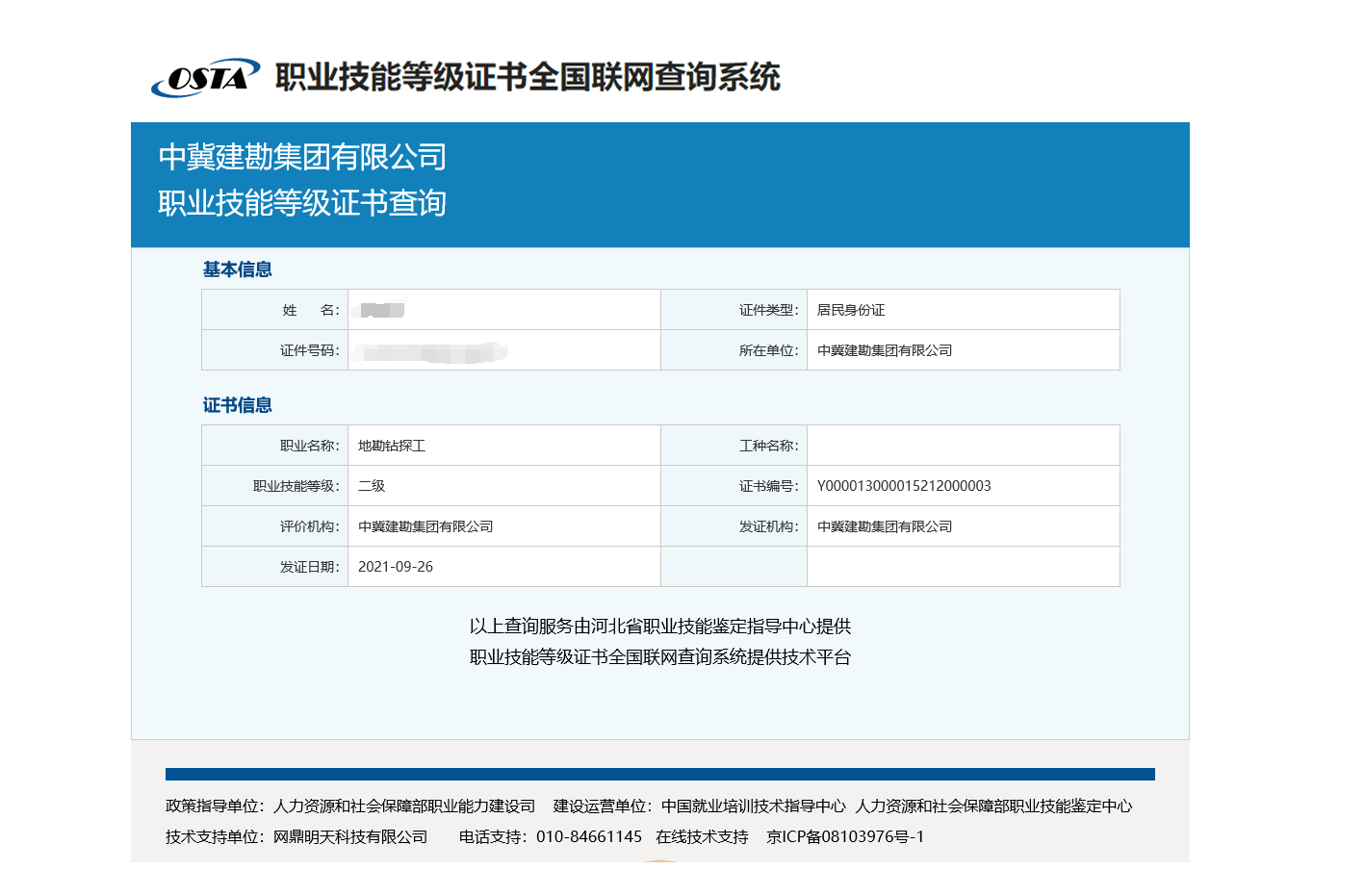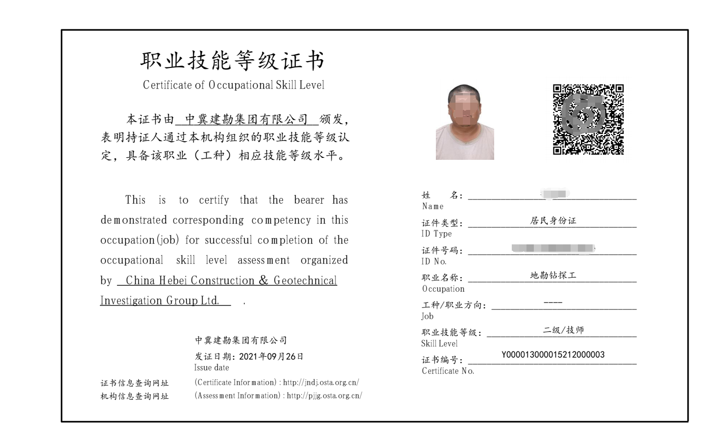 根據(jù)《國家職業(yè)技能標準》,公司按照取得的職業(yè)技能等級認定范圍,結(jié)合公司制度及內(nèi)部認定的工人技術(shù)等級情況,制定了《中冀建勘集團有限公司職業(yè)技能等級套改方案》,組織開展了334名技術(shù)工人職業(yè)技能等級認定工作,取得了職業(yè)技能等級證書。同時,根據(jù)政府相關(guān)政策,申請取得了相應(yīng)的補助資金。