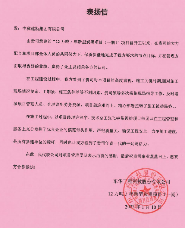 12萬噸/年炭黑項目(一期)項目強(qiáng)夯施工圓滿完成施工任務(wù),總包方對我公司年青的項目團(tuán)隊高度認(rèn)可,稱他們是所有參建單位的標(biāo)桿,充分展示了我公司年青一代的干勁與活力。