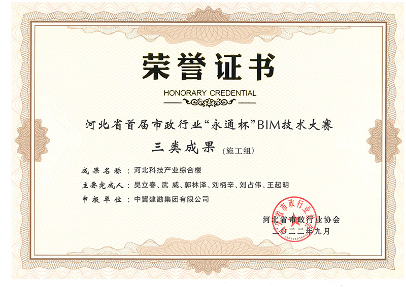 公司兩項工程技術(shù)成果在河北省首屆市政行業(yè) “永通杯”BIM技術(shù)大賽中喜獲殊榮