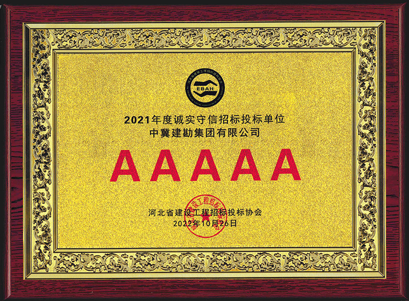 近日,我公司被河北省建設(shè)工程招標(biāo)投標(biāo)協(xié)會(huì)評(píng)為2021年度河北省建設(shè)工程招標(biāo)投標(biāo)誠(chéng)實(shí)守信5A級(jí)施工企業(yè)。