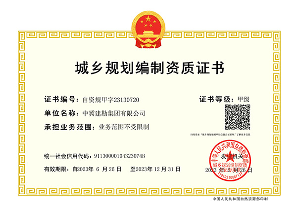 集團公司喜獲城鄉(xiāng)規(guī)劃編制甲級資質(zhì)證書