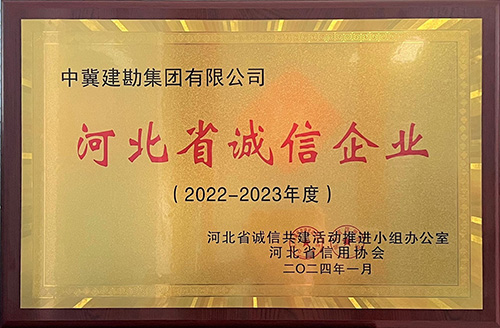 根據(jù)河北省信用協(xié)會(huì)文件“冀信協(xié)會(huì)字[2024]6號(hào)”文《關(guān)于公布2022-2023年度“河北省誠信企業(yè)”的通知》,我公司被河北省誠信共建活動(dòng)推進(jìn)小組辦公室和河北省信用協(xié)會(huì)評(píng)為“河北省誠信企業(yè)”。
