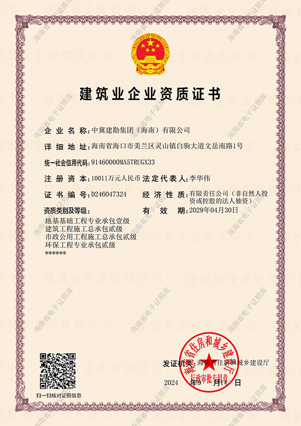 按照公司發(fā)展規(guī)劃,經(jīng)過(guò)近半年的努力,海南公司于2024年9月14日通過(guò)海南省住建廳審查,成功將地基與基礎(chǔ)工程專業(yè)承包貳級(jí)晉升為壹級(jí)。此項(xiàng)壹級(jí)資質(zhì)的取得,是海南公司資質(zhì)實(shí)力質(zhì)的飛躍,為海南公司持續(xù)發(fā)展,為公司實(shí)施“雙總部建設(shè)”,構(gòu)建“一業(yè)為主,適度多元化發(fā)展”戰(zhàn)略打下了堅(jiān)實(shí)的基礎(chǔ)。