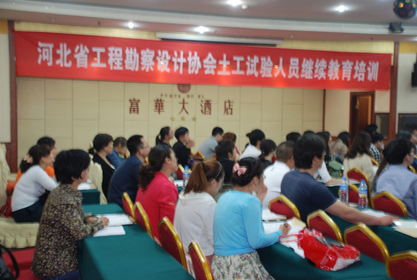 2013年5月6日,我公司作為河北省工程勘察設(shè)計咨詢協(xié)會工程勘察與巖土分會理事長單位,組織承辦的河北省土工試驗員、工程鉆探、描述員等技能操作人員繼續(xù)教育培訓(xùn),在石家莊市富華大酒店正式開班。