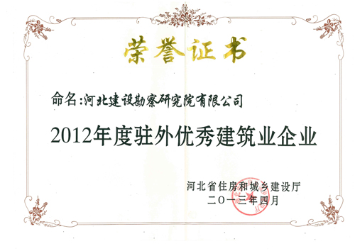 4月26日,河北省住房和城鄉(xiāng)建設(shè)廳發(fā)布冀建市[2013]8號(hào)文件,對(duì)2012年度在工程質(zhì)量安全管理等方面作出突出成績(jī)的駐外建筑業(yè)企業(yè)和個(gè)人進(jìn)行表彰。其中,我公司被命名為2012年度駐外優(yōu)秀建筑業(yè)企業(yè),祁建永、劉雙辰、史曉楠、陳玉國(guó)被命名為2012年度駐外優(yōu)秀項(xiàng)目經(jīng)理。